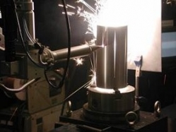 真空チャンバ内で溶接します。レーザで対応しづらいアルミニウム・銅など金属の溶接加工に用い、深い溶込み溶接など高品位溶接が可能です。