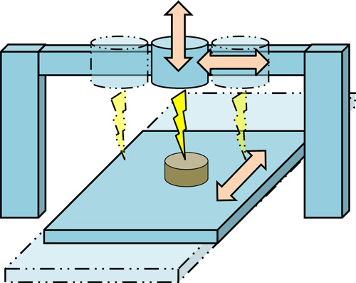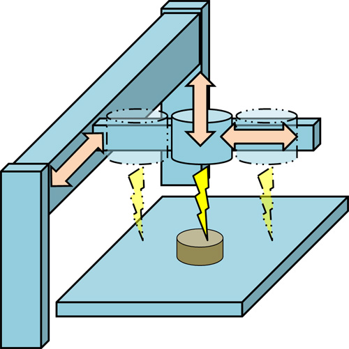 ・加工ヘッド部の重量によっては片持ち軸の先端部がたわむ